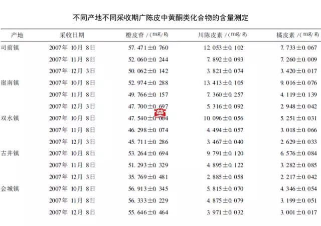 以上,《藥典》似乎沒明確地界定出青皮和陳皮(紅皮)的采收時間,但在橙皮苷的含量上則說得非常清楚。如果按橙皮苷的含量來界定青皮和紅皮,那就簡單、粗暴得多了,測出多少是多少,比大益“油漆桶”更直接。