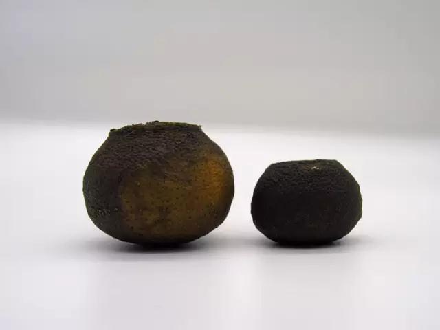 小青柑果形小,適合裝入細嫩茶菁,味道青澀、果香濃郁;青柑果實接近成熟,較小青柑大,適合填入中壯茶菁,茶味濃醇、略帶果香;兩者在香氣、口感上并無高下之分。